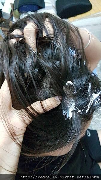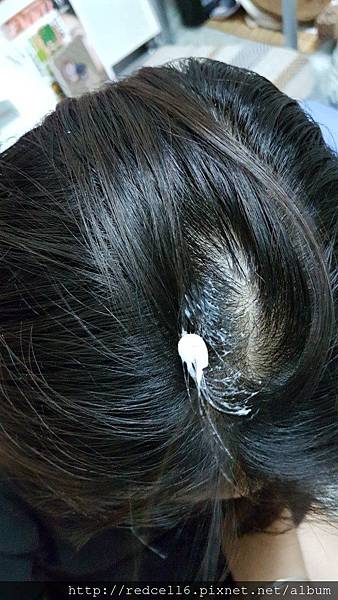 【▼】將Syoss絲蘊植萃頭皮養護護理膜乳液乾濕兩用塗抹按摩於頭皮。